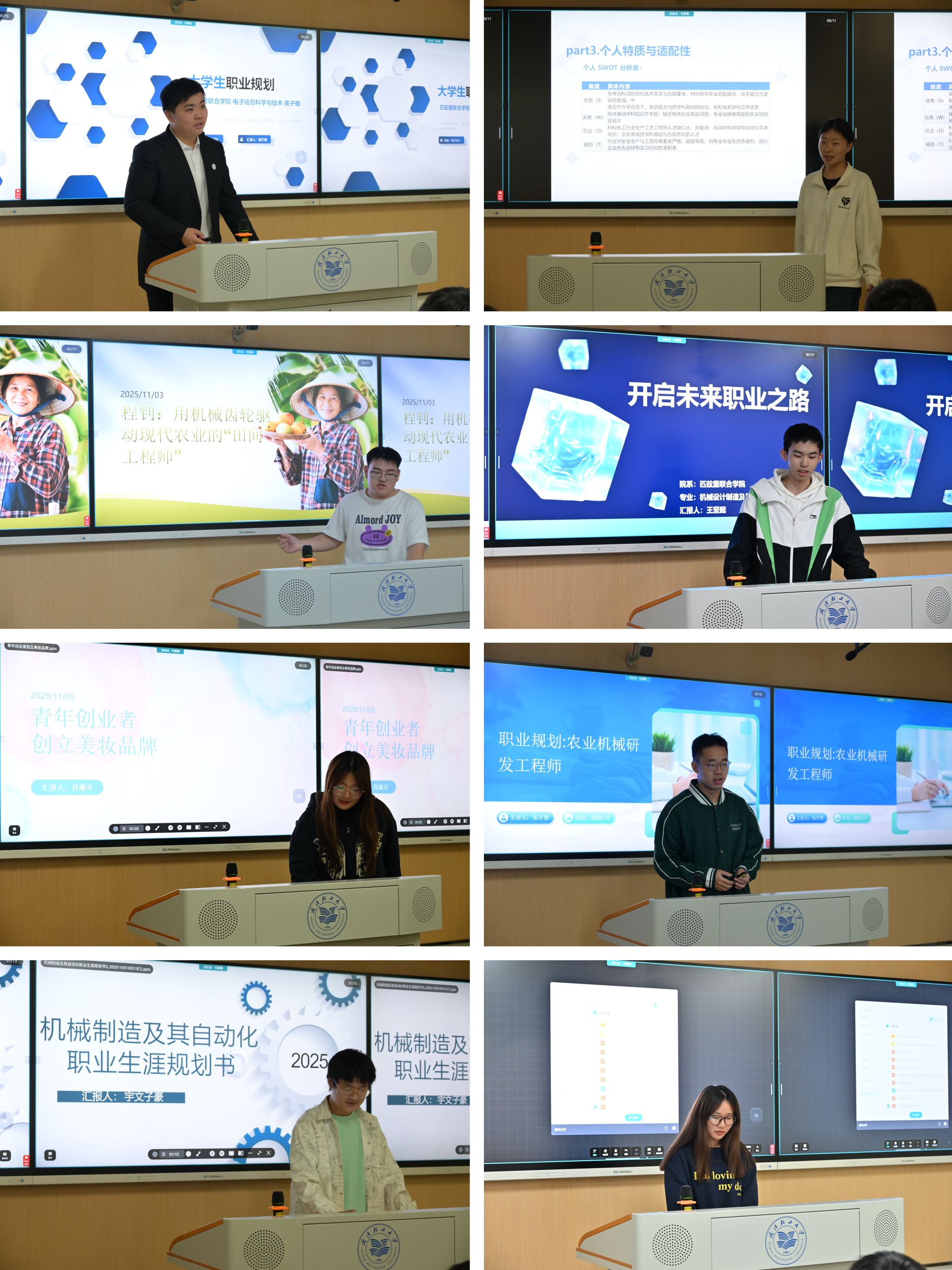 选拔赛采用“现场展示答辩”与“评委提问”相结合的形式。参赛选手们围绕自我认知、职业认知、职业目标与路径设计、评估与调整等方面,进行了详细的阐述与精彩的展示。整场比赛组织有序,氛围热烈,充分展现了英国正版3652025级新生对未来的憧憬与探索精神。