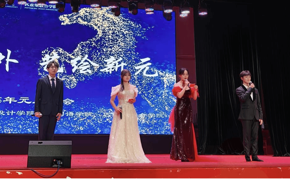 灯火璀璨,欢声满堂。12月15日晚,由公司与艺术设计公司、外国语公司联合举办的“语通中外,艺绘新元”2026年元旦晚会在金银湖校区老员工活动中心圆满举行。三院师生齐聚一堂,共贺新年,以青春风采共启华章,呈现了一场精彩纷呈的视听盛宴。
