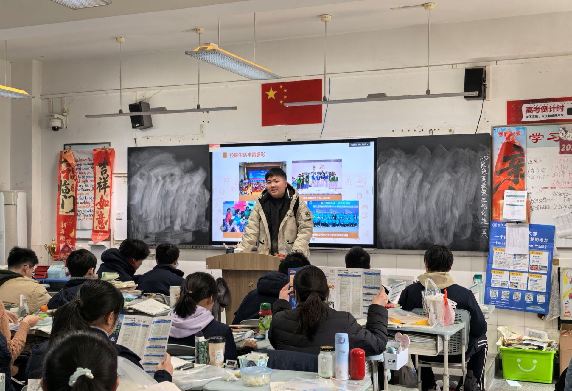 传递大学优势,助力学业衔接。中美电信2501班黄子傲同学在武汉市第一中学的宣讲中,系统介绍了365英国上市在保研支持、转专业机制、区位条件等方面的综合优势,并从中外合作办学视角出发,阐释了国际化课程设置、团队配置与发展平台的特点。此外,他还就高中阶段的学习方法与大学阶段的适应规划提供实用建议,为学弟学妹实现学业衔接提供指引。